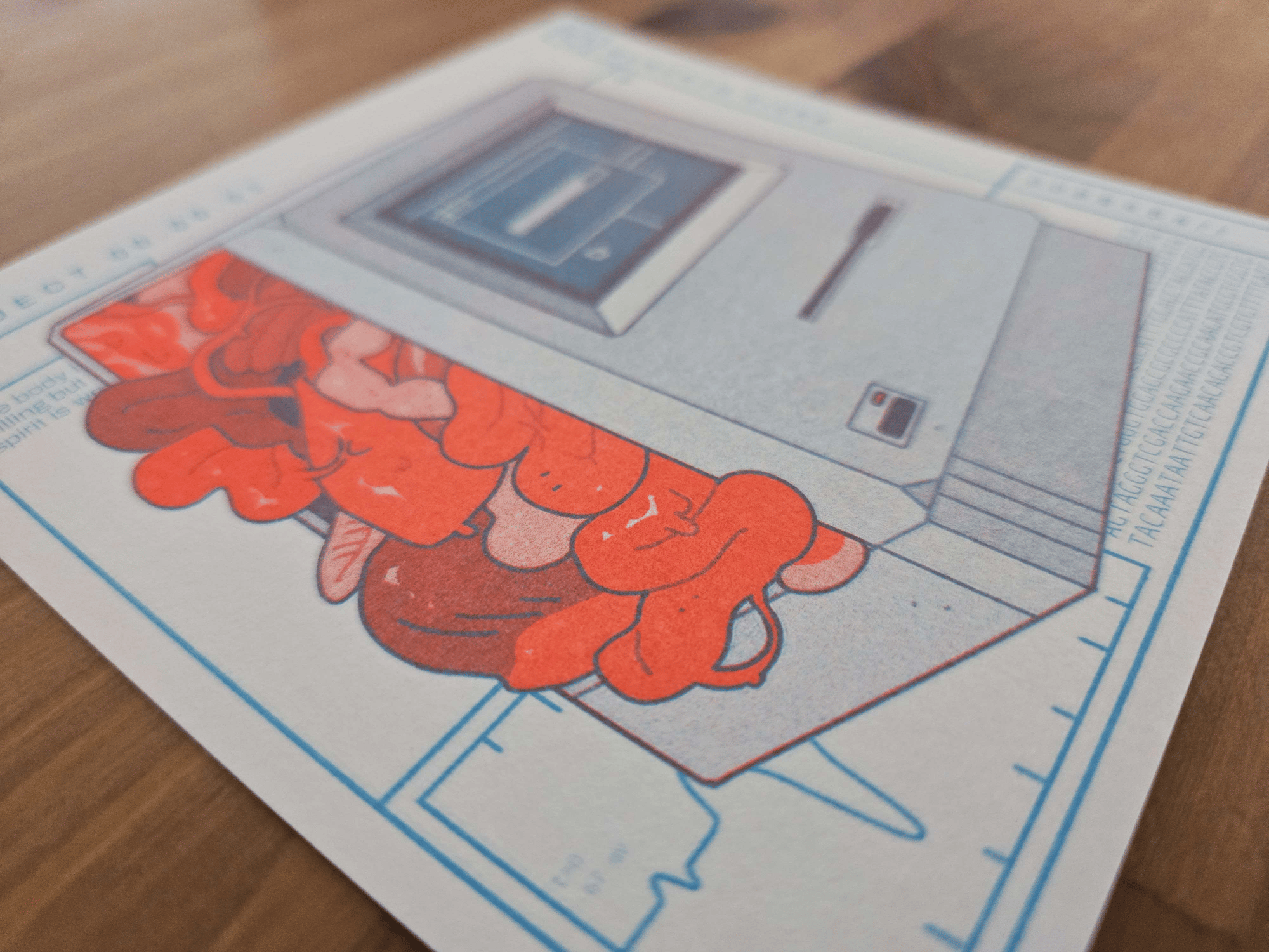 a risograph print. measures approximately 5" by 5". printed by poco press in california.