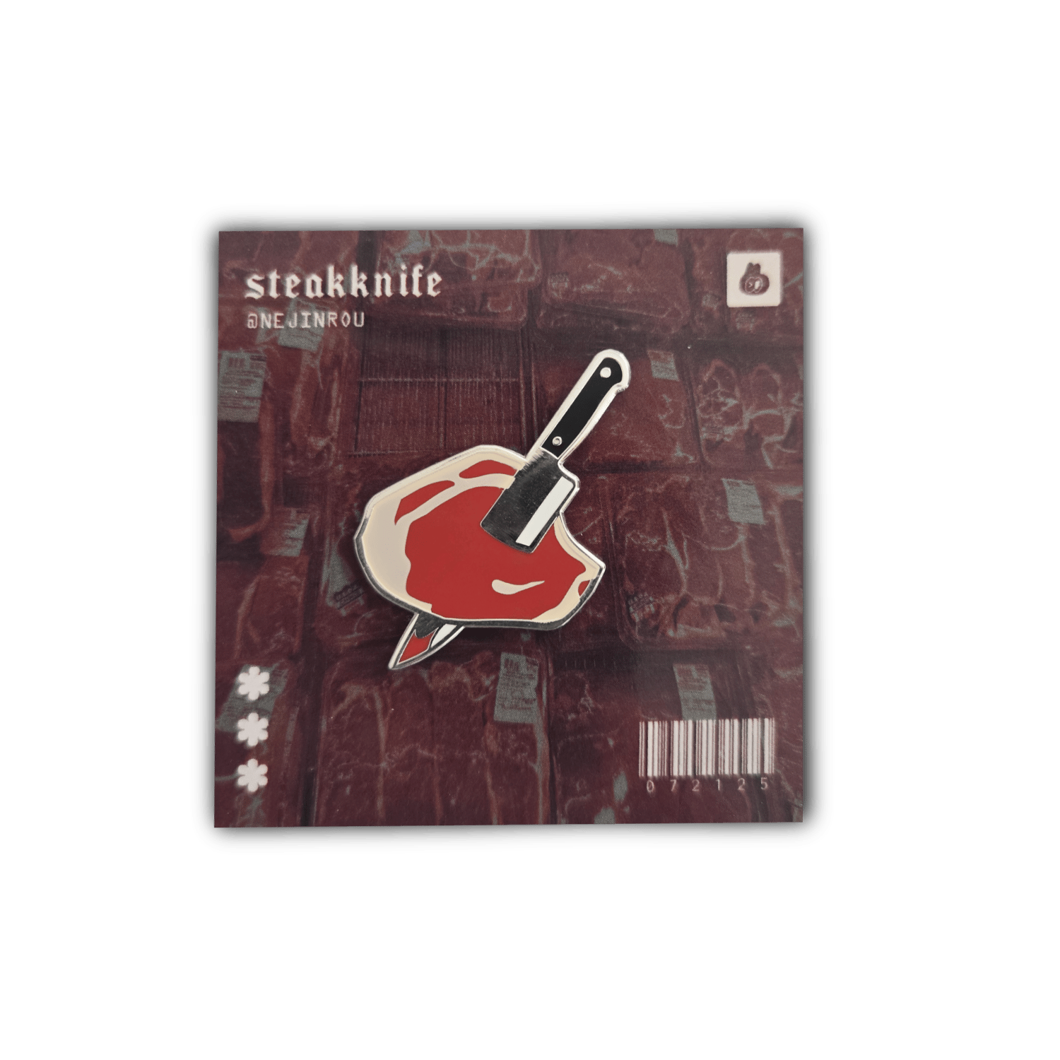 a metal and enamel pin measuring approximately 1", with two pin backs for stability.